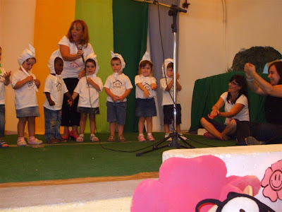 Para já, umas dos nossos "Ursitos que dançaram muito bem o "Bugui Ugui" ecantaram e fizeram a mímica, "O Coelho Alberto".