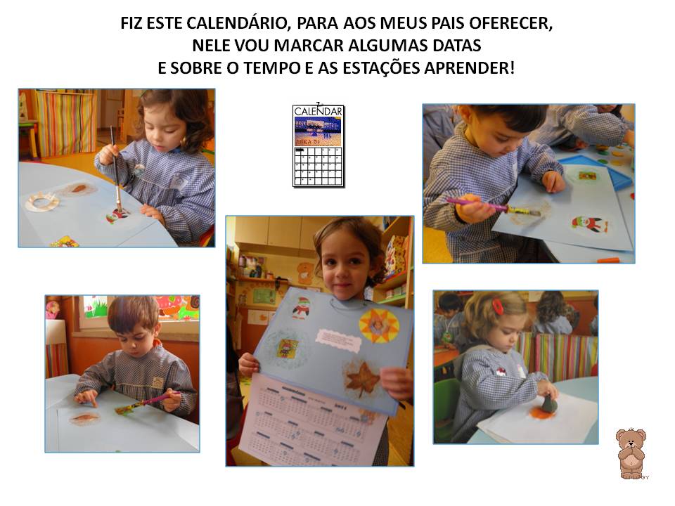 Para oferecer aos pais, os Ursitos fizeram este calendário que os ajuda a estruturar a noção de tempo, e a interpretar os símbolos que criámos para as estações do ano. Gostaram?